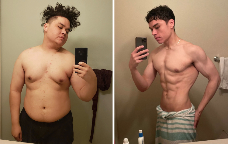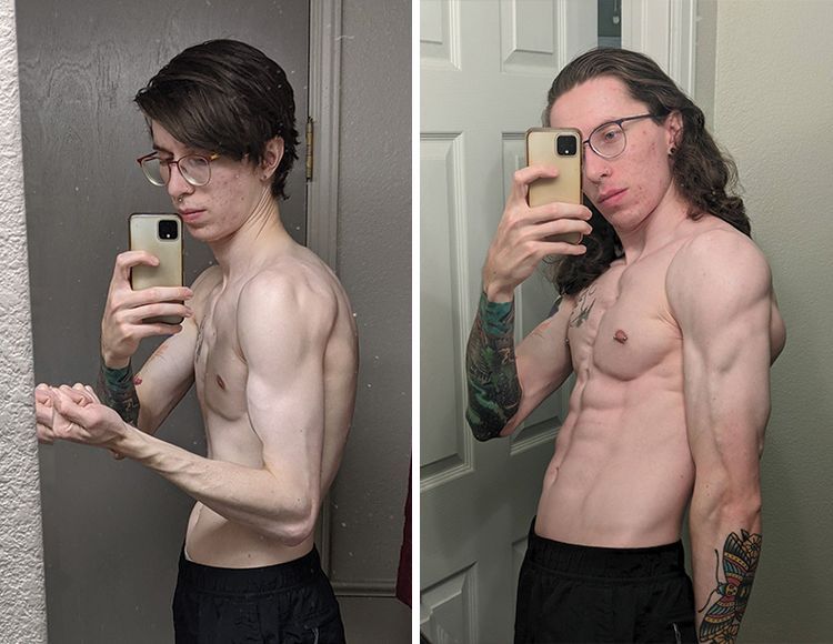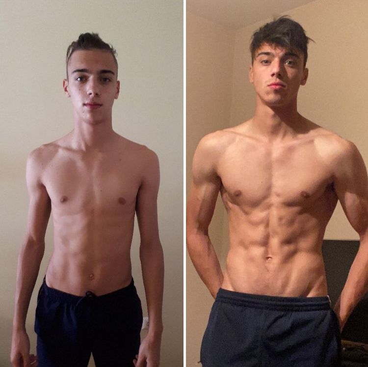 «Первая фотография была сделана 21 мая 2019 года, я стал немного больше из-за самоизоляции и, наконец, начал заниматься в зале в августе 2020 года