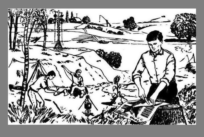- С юга. На палатке есть флажок, по которому можно определить, откуда дует ветер. На картинке есть дерево: с одной стороны ветки короче, с другой длиннее. Как правило, у деревьев с южной стороны ветки длиннее.