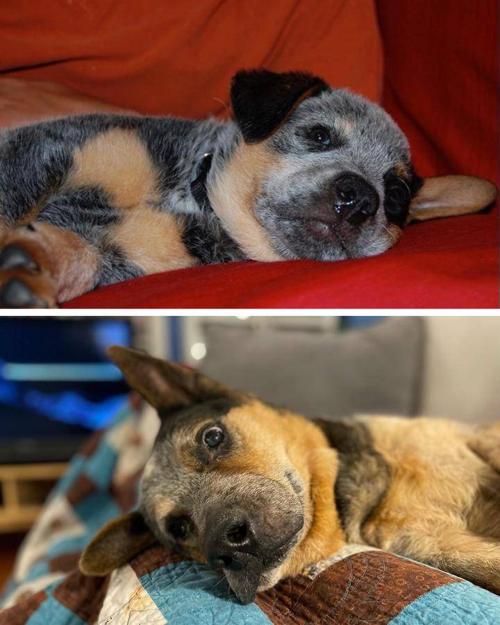 18. “У нашей собаки довольно необычный окрас, и этим она выделялась как в детском возрасте, так и сейчас, когда ей исполнилось 13 лет”