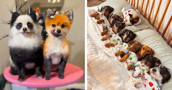 16. Трудно поверить, что эти животные не игрушечные. Но на самом деле это шпицы, которым повезло попасть в руки очень талантливого и креативного грумера.