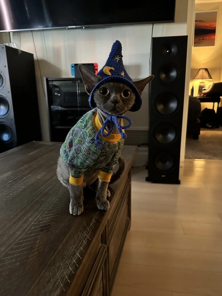 7. “Мой кот по совместительству еще и очень милый волшебник, который просто волшебно выглядит в своем костюмчике и шляпе”