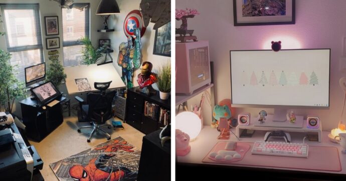 1. “Моя девушка обожает играть в компьютерные игры, и жить не может без розового цвета, поэтому ее домашнее рабочее место выглядит именно так”