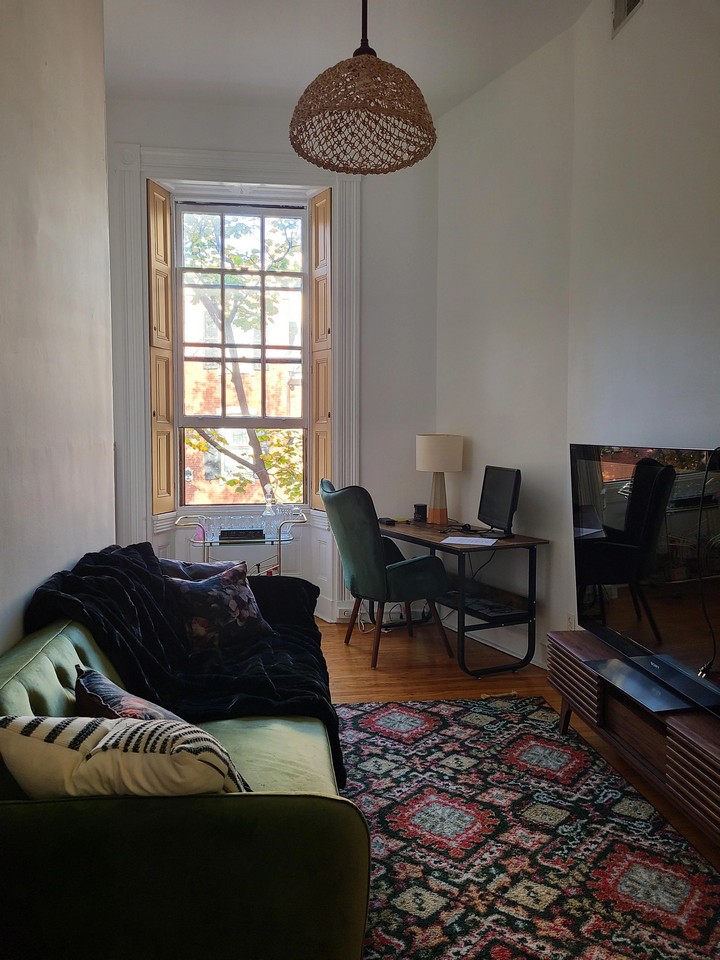 16. “Обустроить рабочее место в гостиной — было отличным решением. Когда я устаю, всегда можно прилечь на диван и посмотреть телевизор.”