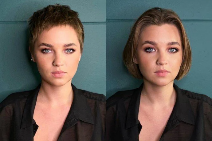 Второй образ был создан спустя шесть месяцев. Волосы хорошо отросли, поэтому у парикмахера получилось создать новую форму.