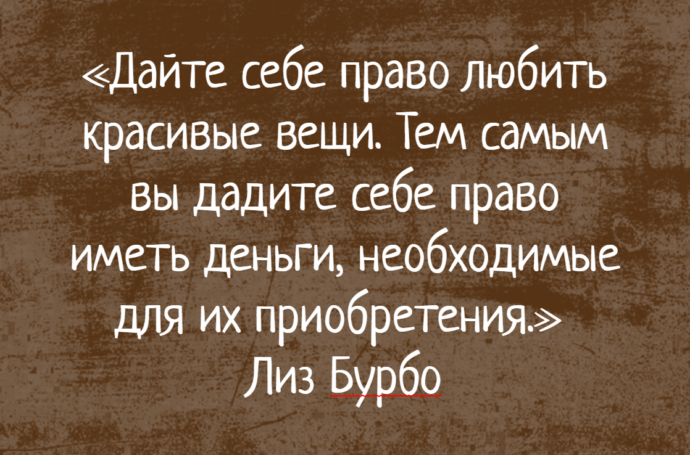 7. «Дайте себе право любить красивые вещи. Тем самым вы дадите себе право иметь деньги, необходимые для их приобретения.»