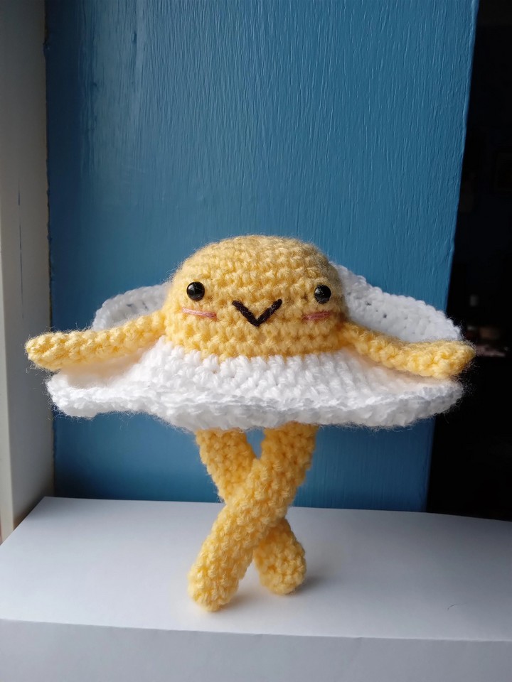 2. Вязаная игрушка в виде яичницы-балерины — это весьма креативно и необычно. Браво автору!