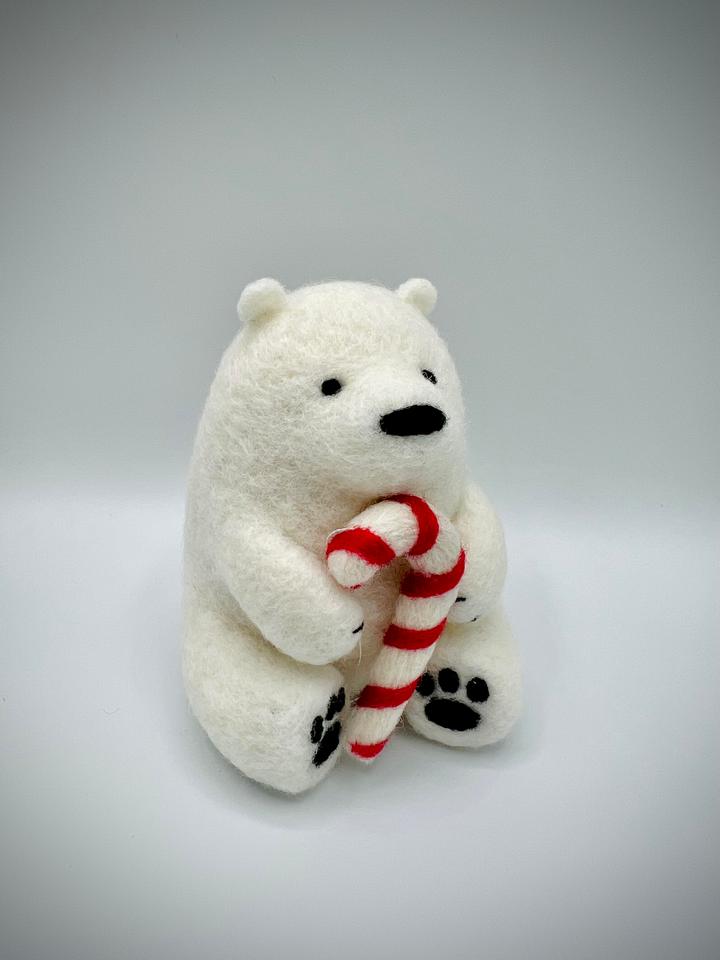 9. “В преддверии рождественских праздников сделала из шерсти белого медвежонка с традиционной конфеткой в лапках”