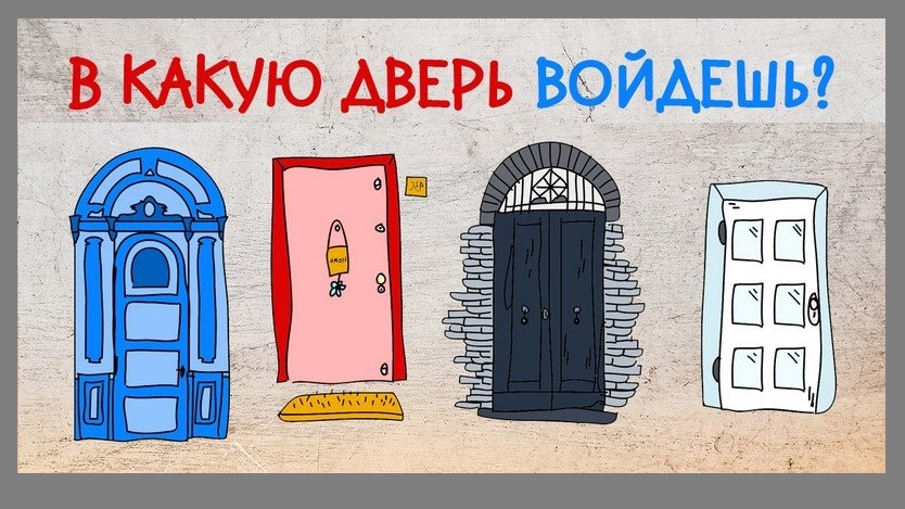 Для того чтобы узнать, как сложится жизнь в ближайшем будущем, тебе нужно выбрать одну из дверей. Посмотри на двери и выбери ту, в которую тебе хотелось бы войти.