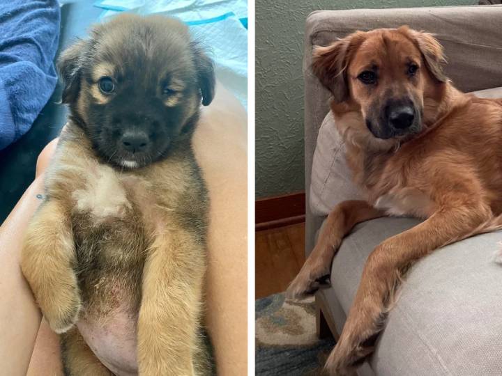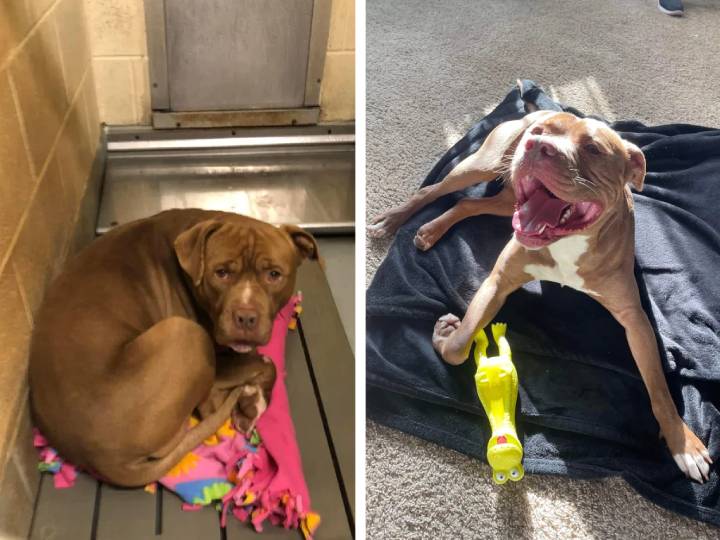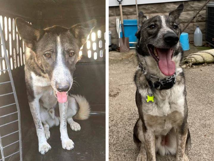 4. “Наш пес «до» и «после» того, как мы забрали его из приюта. Даже не верится, что это одна и та же собака.”