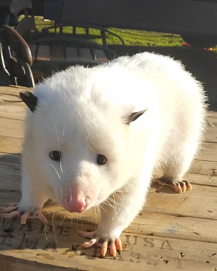 1. “Познакомьтесь, это опоссум-альбинос Фоззи. Мы встретили его в Природном парке Three Forks”