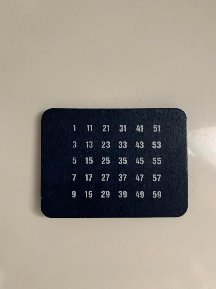 Ответ: “Эта табличка из детского набора фокусника. Фокус заключается в «угадывании» чисел, которые загадали зрители.”
