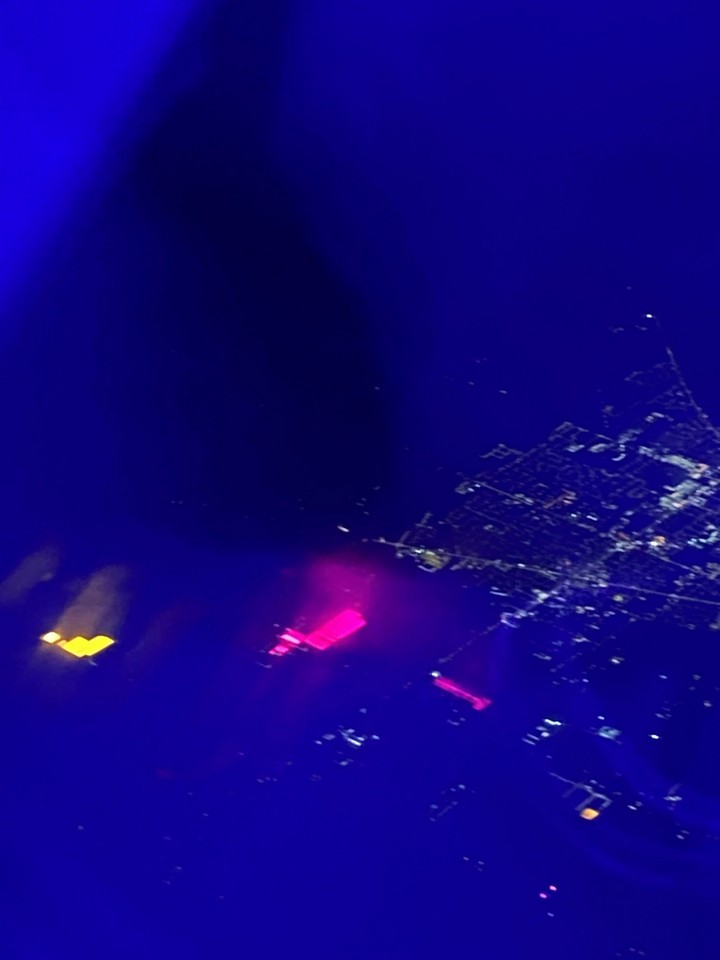 8. “Летела на самолете и заметила на окраине города большие светящиеся здания. Одно светилось желтым, а другое розовым.”