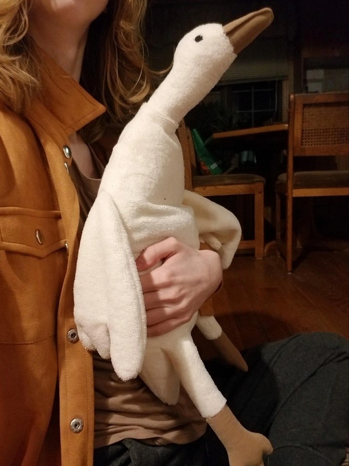16. “Мой любимый плюшевый гусь. Внутри него есть специальный мешочек, благодаря чему игрушку можно нагреть в микроволновке и он долго будет оставаться теплым.”
