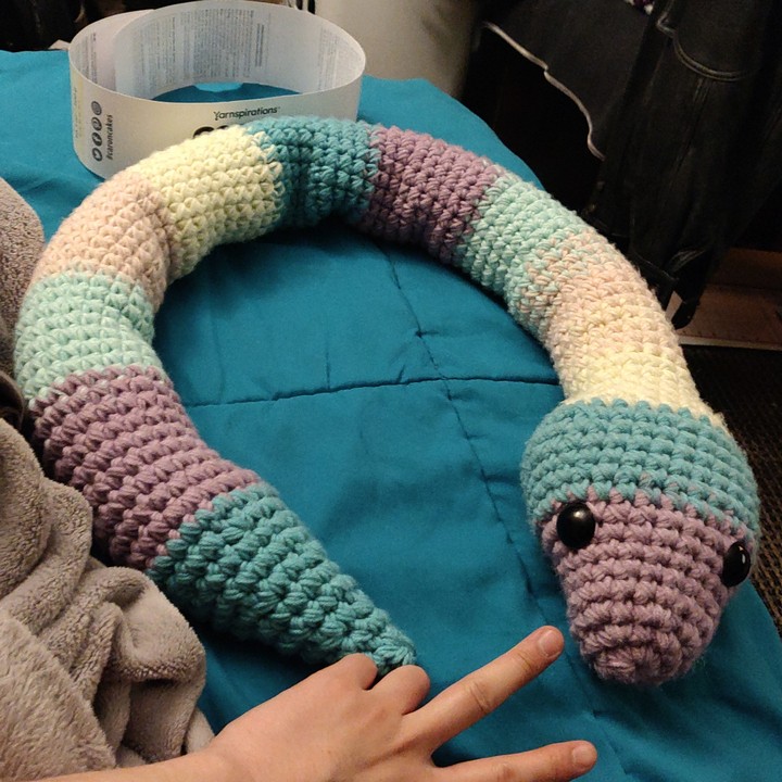 4. “Связала вот такую очаровательную змейку с глазами-пуговичками”
