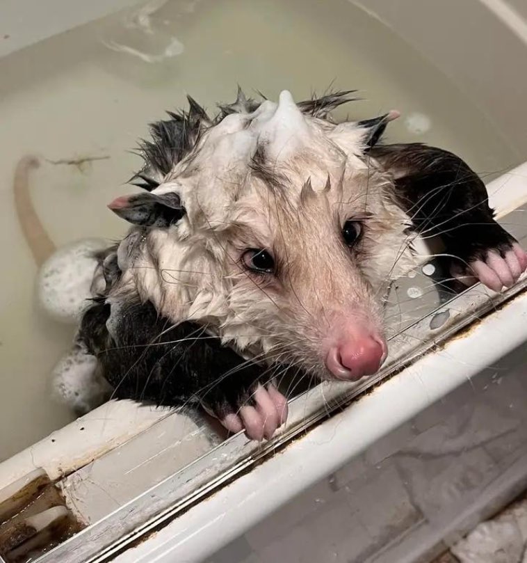 16. “Мой домашний опоссум не в восторге от гигиенических процедур, но мужественно терпит”