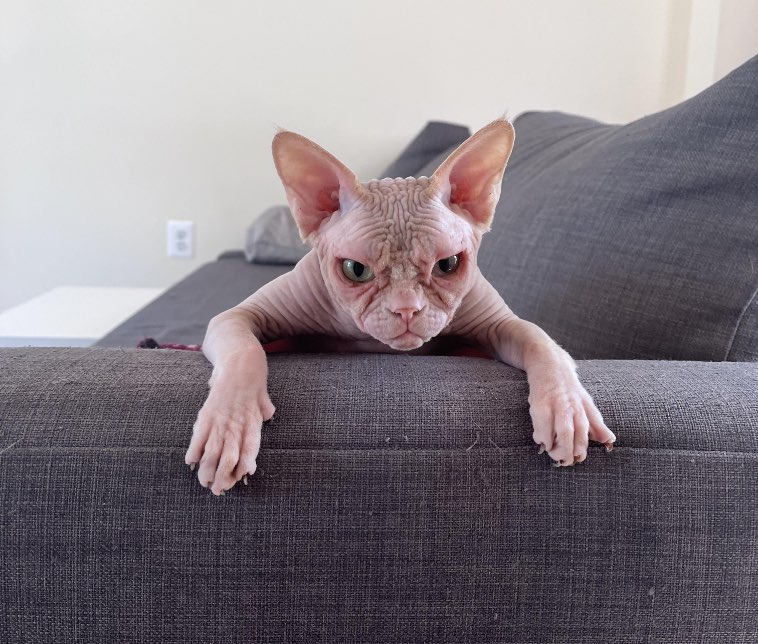 8. Говорят, что сфинксы — очень дружелюбные котики, но, наверное, этот надменный господин — исключение из правила
