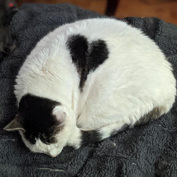 13. Еще один очаровательный черно-белый пушистик с сердечком. Но на этот раз на спине.
