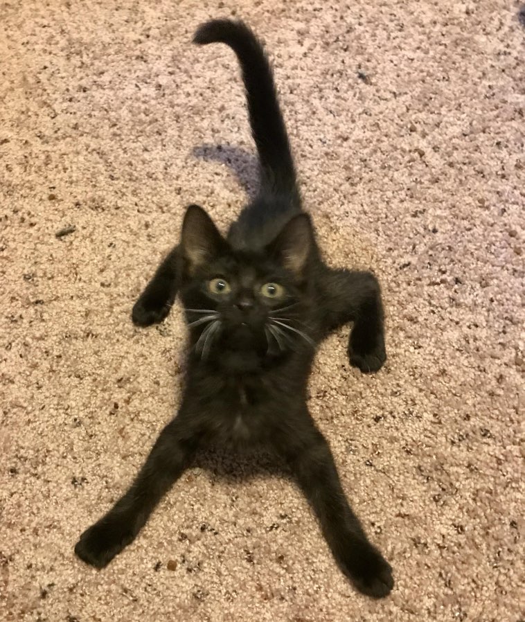 8. “Кажется, котенок пытается напугать меня, изображая паука”