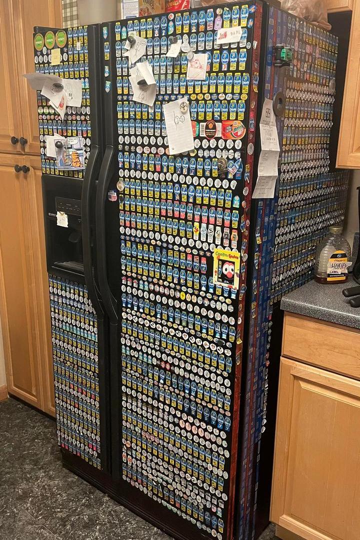 12. “Вот так выглядит холодильник, когда все члены нашего семейства на протяжении нескольких последних лет не выбрасывали наклейки от фруктов, а клеили их на дверцы”