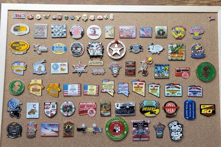 3. “Я участвую в гонках по пустыне на мотоциклах с 2011-го года и собираю значки, которые дают финишировавшим гонщикам”