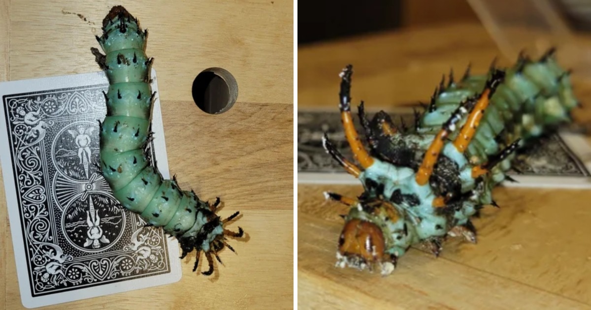 Это Рогатый дьявол — личинка Королевского мотылька. К сожалению, их число стремительно сокращается. Посмотрите, они очень красивы, когда превращаются в бабочку.