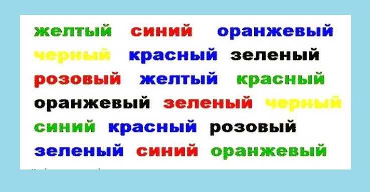 Упражнение развивает оба полушария. Постарайтесь быстро назвать цвет слов.