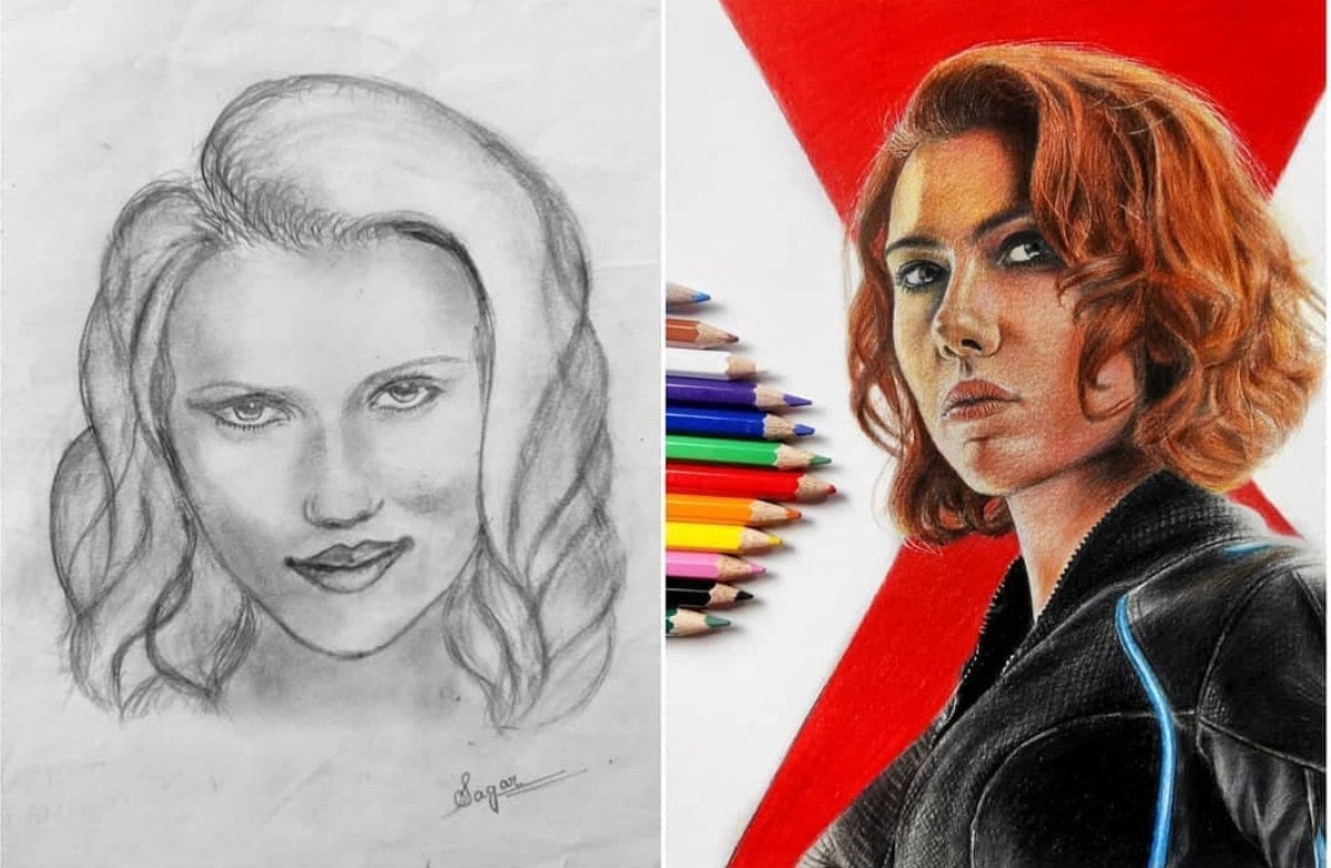 Вторая работа, конечно, хороша. Однако первый рисунок заслуживает отдельного внимания, потому что он невероятно забавен. Как круто, что художница сохранила его, чтобы мы все имели возможность насладиться им.