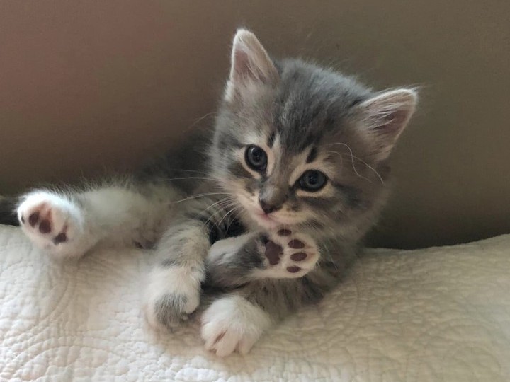 3. “Котенок обожает этот пушистый плед. Наверное, он напоминает ему его мягкую шерстку его мамы.”