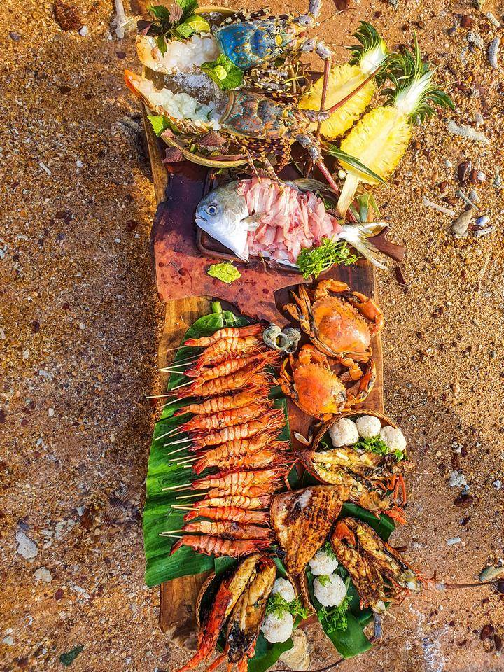 2. Роскошная доска с морепродуктами, приготовленными на природе на открытом огне