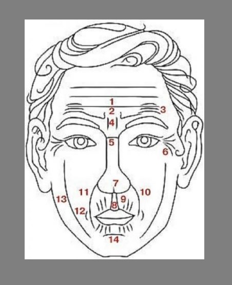 Эти морщины связаны со многими важнейшими внутренними органами. Наличие данных морщин позволяет предположить сбои в работе не только почек, но и печени, желчного пузыря, кишечника и даже сердца (так как почки, регулирующие состав и густоту крови, оказывают прямое воздействие на работу сердечной мышцы, неустанно перекачивающей кровь).
