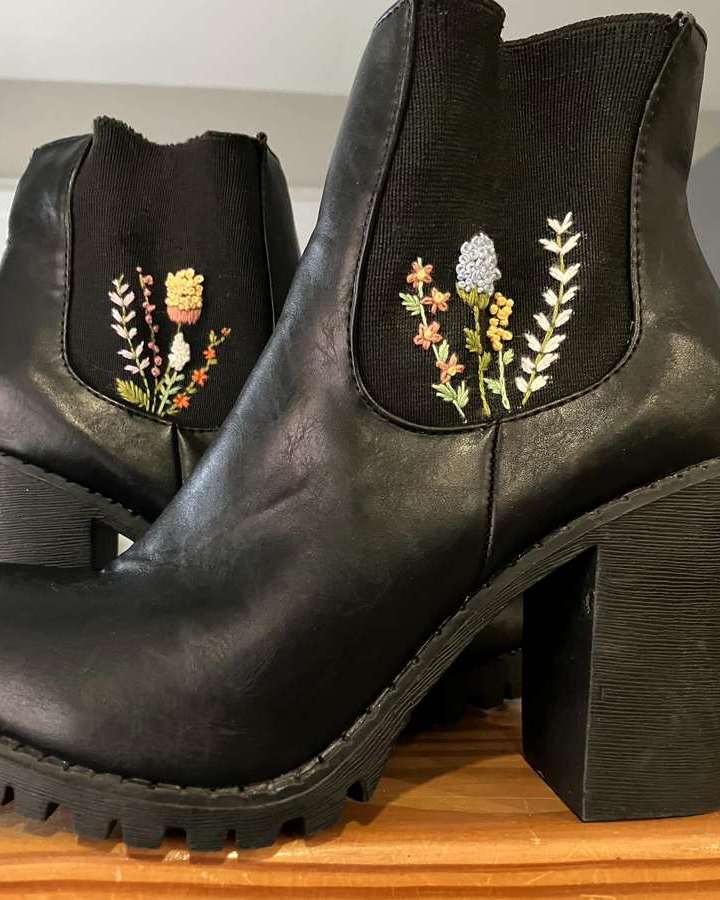 2. “Обычные черные ботинки выглядят довольно скучно, поэтому мне захотелось украсить их вот такой симпатичной вышивкой”