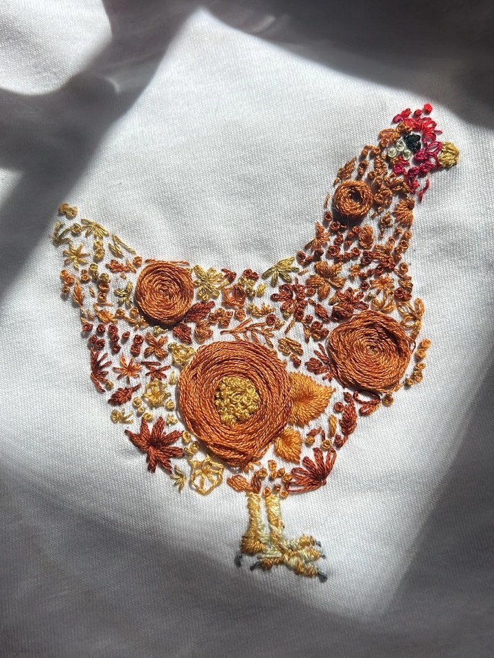 7. “Мне понравилась эта оригинальная курочка, и я решила, что будет неплохо, если она поселится на моей белой майке”