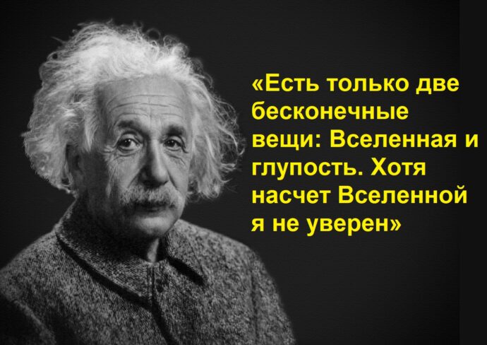 «Есть только две бесконечные вещи: Вселенная и глупость. Хотя насчет Вселенной я не уверен», — Альберт Эйнштейн.