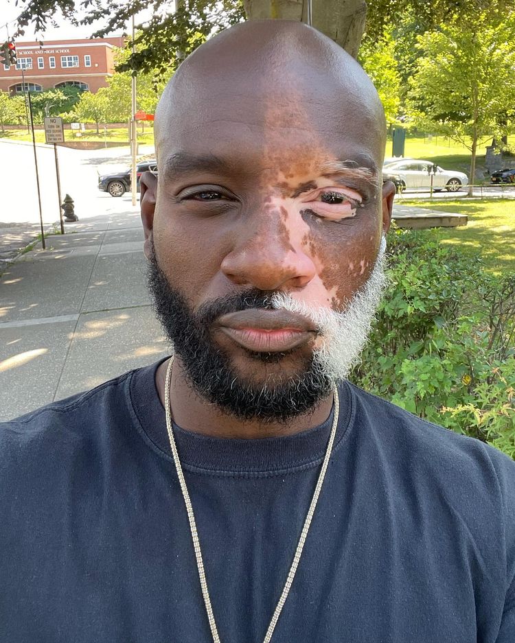 Парень с витилиго, заболеванием, которое разделило его лицо на две части