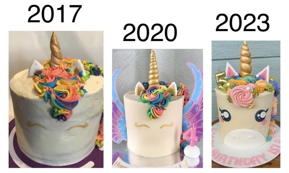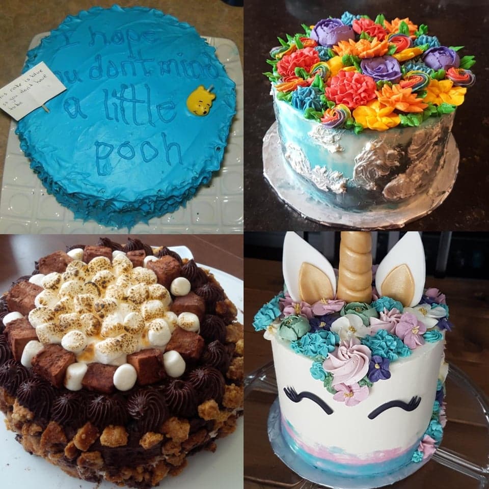 Мой первый торт по сравнению с моим последним. Разница за 18 месяцев практики!