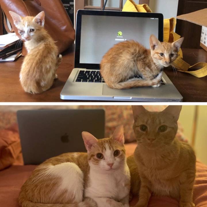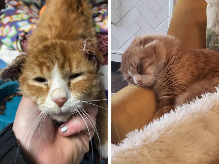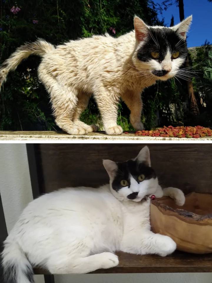 11. “Котенок, которого я нашла на улице в 2021 году, был в очень плохом состоянии. К счастью, мне удалось ему помочь и найти для него любящих хозяев. И судя по фото, коту у них дома живется весьма неплохо.”