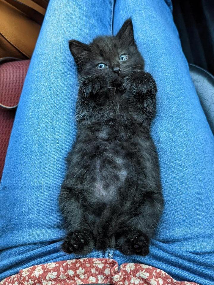 1. “Маленький черный хулиган ждет, чтобы я почесала ему его пушистый животик”
