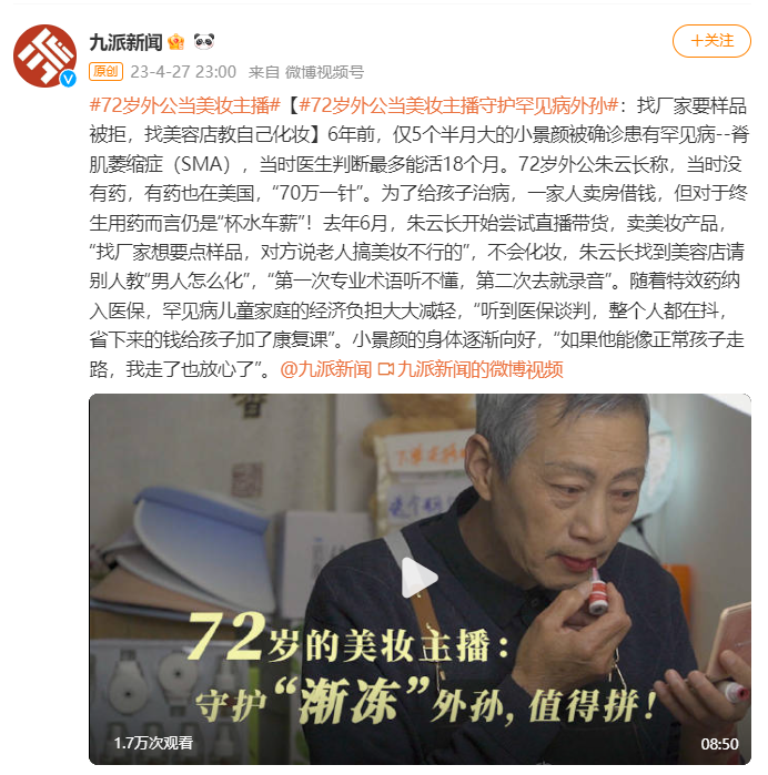 72-летний мужчина из Китая растопил сердца миллионов после того, как стало известно, что он проводит большую часть своего времени, продвигая в Интернете косметику и другие косметические товары, чтобы лечить своего больного внука.