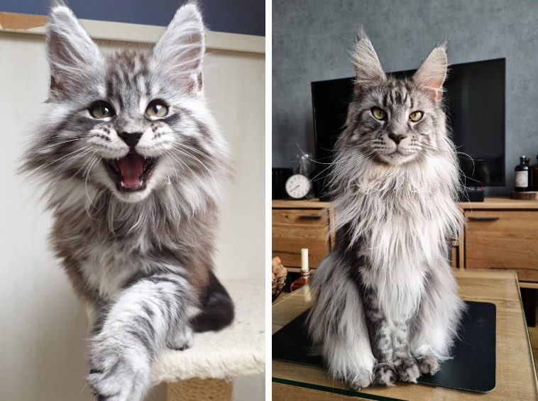 6. 3 месяца и 8 месяцев. Как видите, мейн-куны растут не по дням, а по часам.