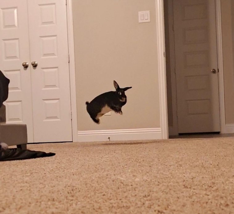 16. “Кролики — настоящие чемпионы из прыжков в высоту. И наш питомец тоже не отстает.”