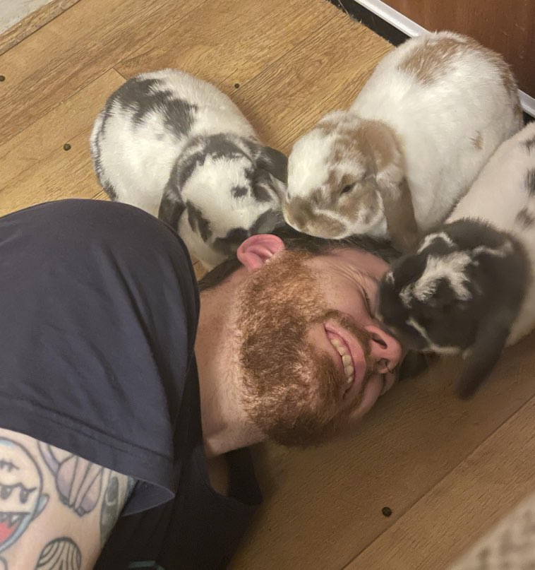 5. Сразу три свирепых кролика атаковали мужчину, который случайно упал на пол