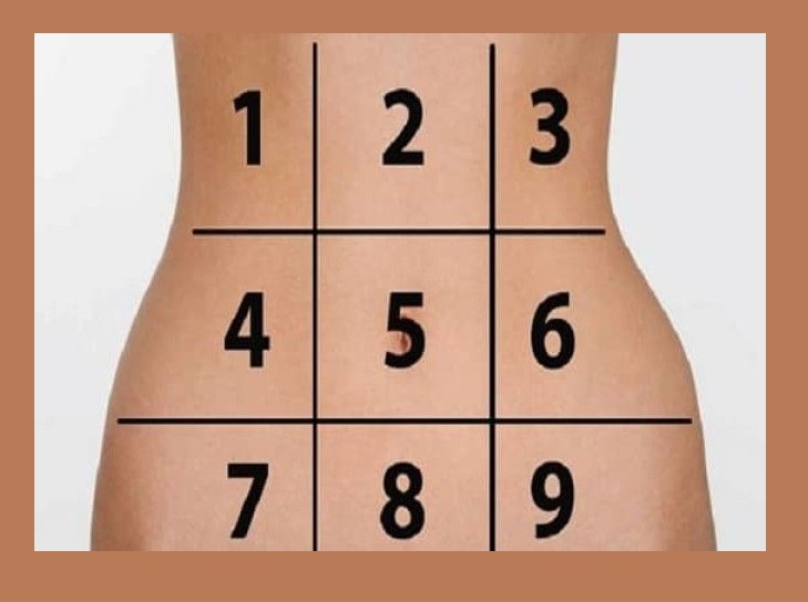 Числа 1, 4 и 7 представляют собой правую часть. 2, 5 и 8, центральная область и 3, 6 и 9, левую сторону. Карта находится чуть ниже. Определите местонахождение боли и узнайте возможную причину: