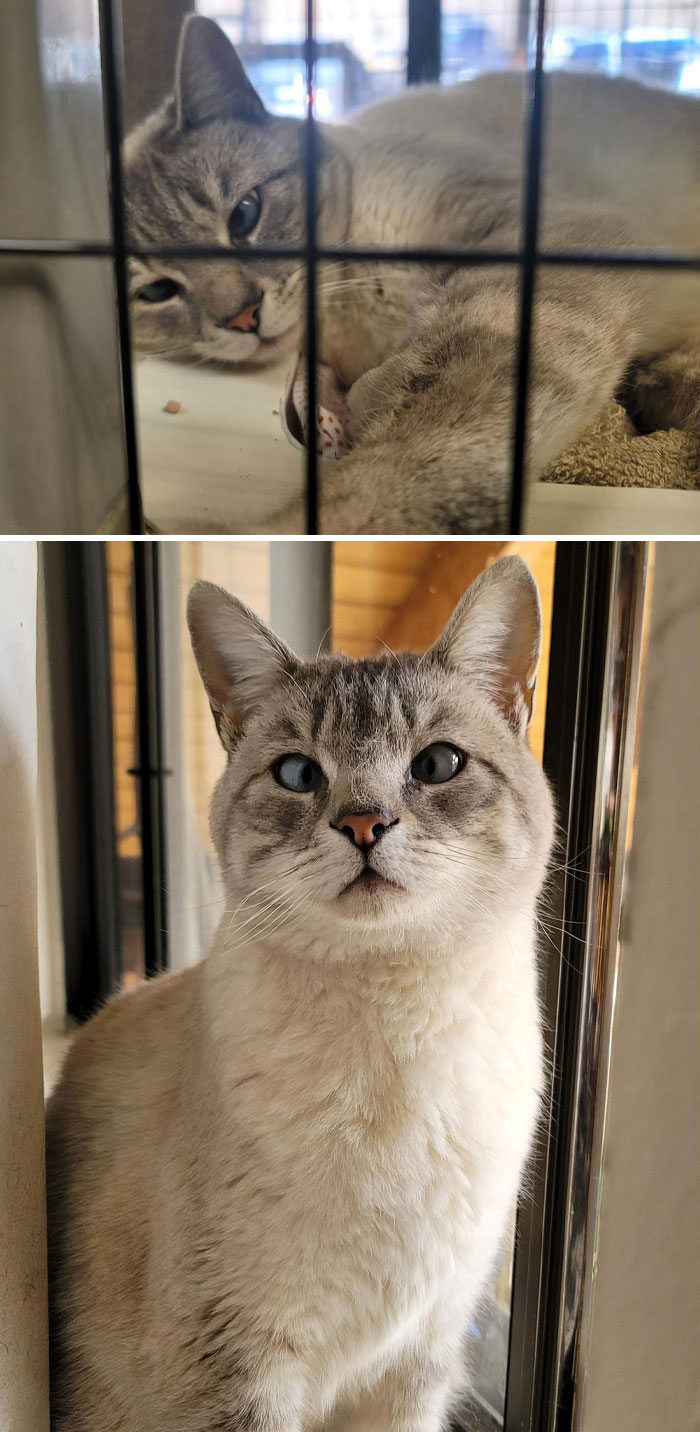 «Одна из моих приемных кошек после месяца заботы и любви»