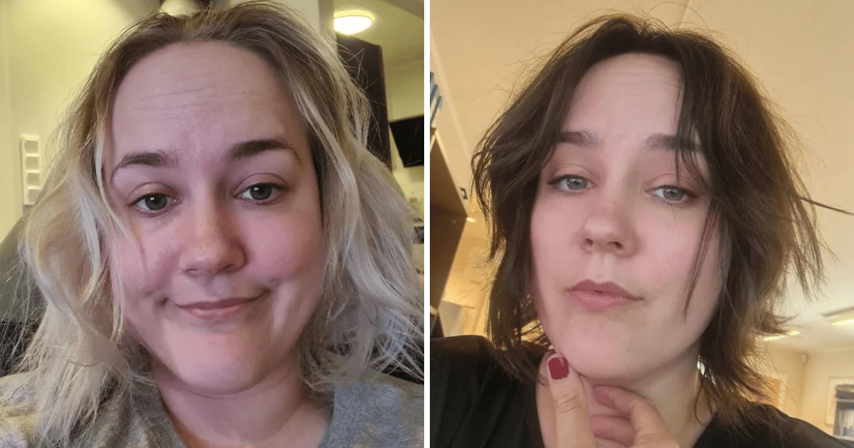 Вы уверены, что это один и тот же человек? Вам очень идут тёмные волосы.