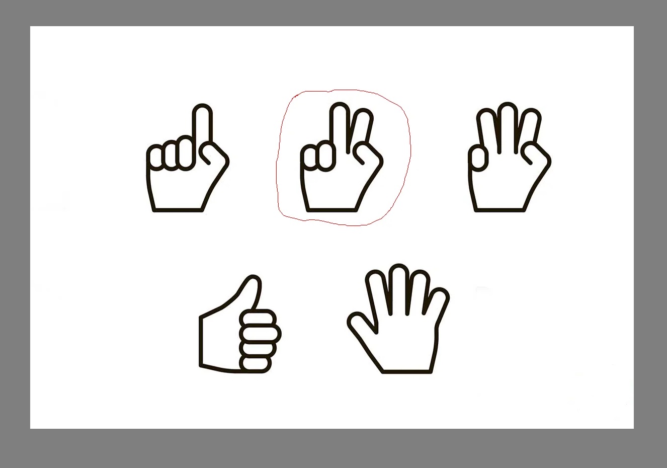 Если вы внимательно рассмотрели изображение, то заметили, что на всех руках поднято нечетное количество пальцев, кроме обведенного, на котором их два, следовательно, четное число.