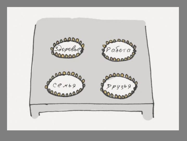 Один из способов представить хрупкий баланс между работой и личной жизнью получил название «теория четырёх конфорок». Эта концепция очень проста и наглядна. Представьте, что ваша жизнь — это плита, на которой есть четыре конфорки.