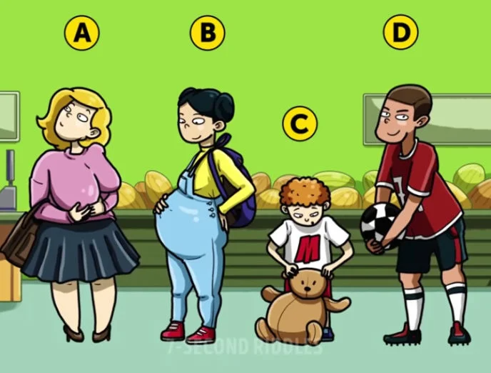 Похитительница дынь — женщина, отмеченная буквой А. Ее выдает гигантский размер только одной груди, которую ей еще предстоит поддерживать.