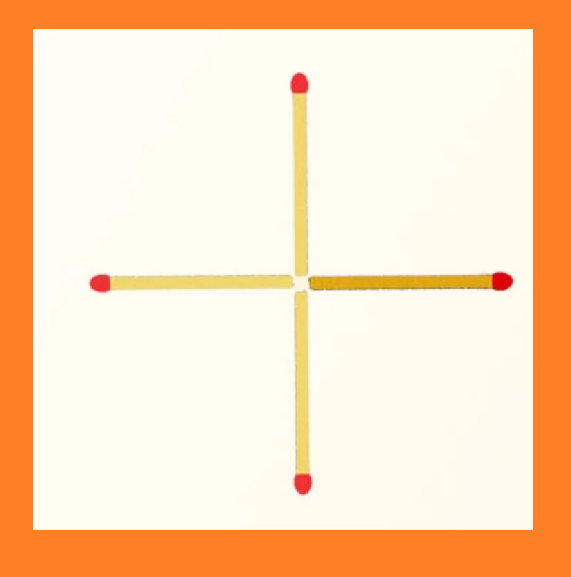 Нужно не меняя положения спичек, просто немного отодвинуть одну из них. В результате получится маленький квадрат в центре знака плюс. Как показано на изображении ниже.