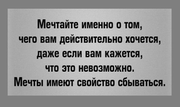 Отпусти свою мечту, но действуй! Написав желание и спрятав листочек в укромный уголок, не думай, что это всё! Действуй навстречу своей мечте, но (!) ни в коем случае на ней не зацикливайся. И не нарушай гармонию Вселенной, сметая всё и вся на своём пути, ради достижения Цели. Действуй продуманно, разумно и твое желание обязательно исполнится!