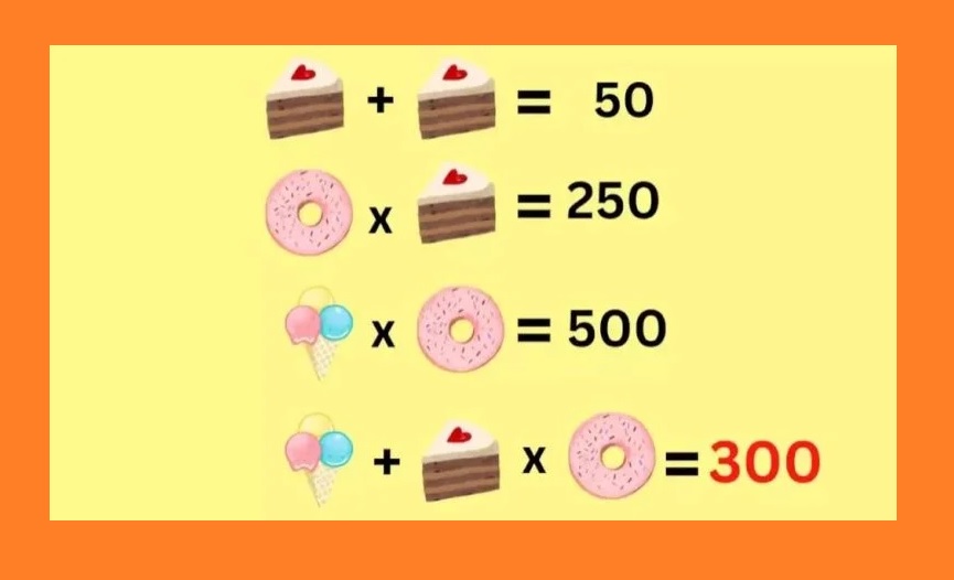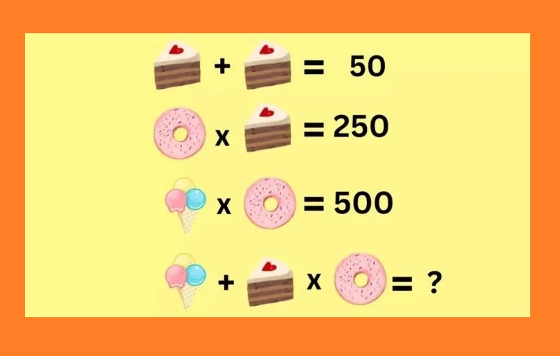 Даже базовых знаний математики должно хватить, чтобы раскусить сладкую задачу и найти значение неизвестных — кусочка торта, пончика и леденцов.